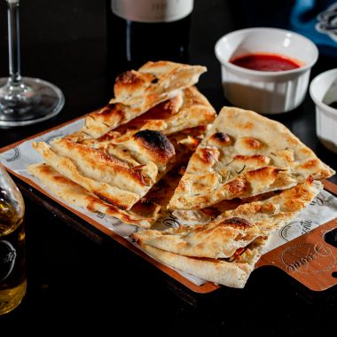 Massas de longa fermentação e muita qualidade nos ingredientes. Azeite de oliva, sal grosso e alecrim.