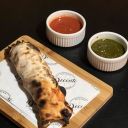 Nossa massa de pizza enrolada fina e crocante com calabresa e mussarela